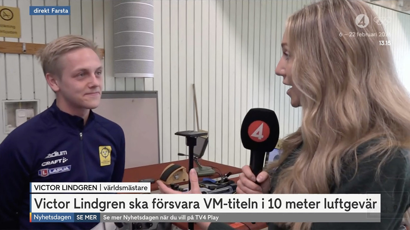 Inför VM i Egypten lockade Victor Lindgren stort medieintresse. Under pressträffen i Stockholm intervjuades han av TV4, DN, TT och Radiosporten – och lät några av reportrarna testa på skyttet själva. -