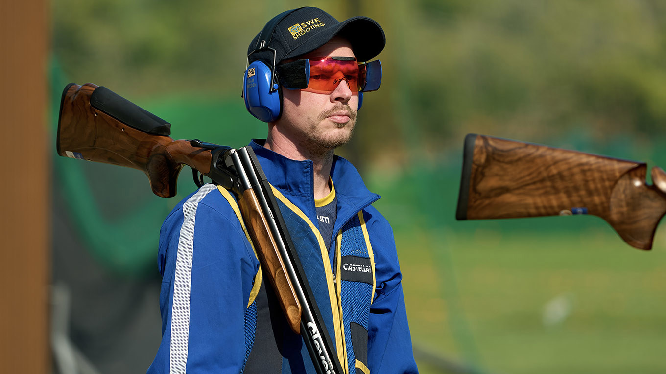 Rickard Levin Andersson ligger sjua inför sista kvaldagen i VM i Olympisk trap – bara en duva från finalplats efter två starka tävlingsdagar. -