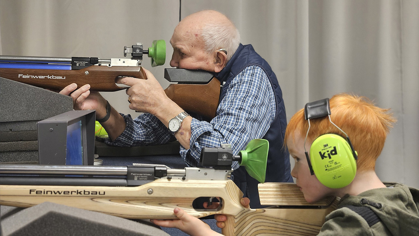 På alla hjärtans dag träffades för första gången Ingelstad Skytteklubbs äldsta respektive yngsta medlem. Sven-Erik Gräns 95 år och Mattis Söderberg 5 år. -