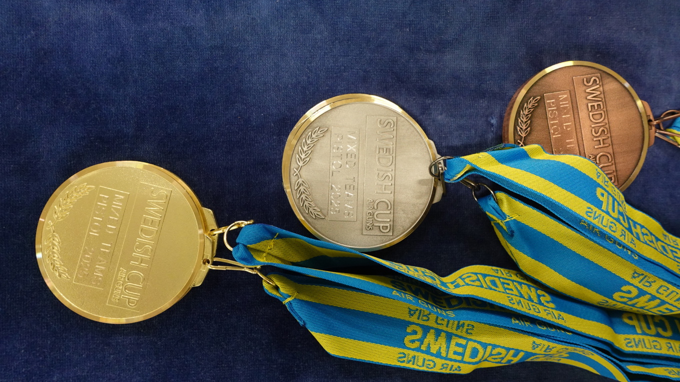 En tendens i årets Swedish Cup i Sävsjö skyttecenter är att pistolpallarna blir ganska blågula, medan gevärspallarna går mer i rött/blått/vitt. -