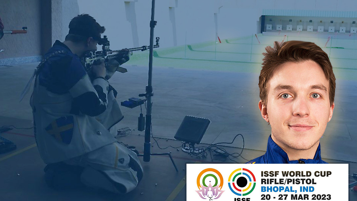 Marcus Madsen är ensam svensk tävlande i Indiens världscup. Han har visat fin form i år och även i denna VC sköt han stabila poäng, som gav 15:e plats i 10 m och tionde placering i 3x20. -