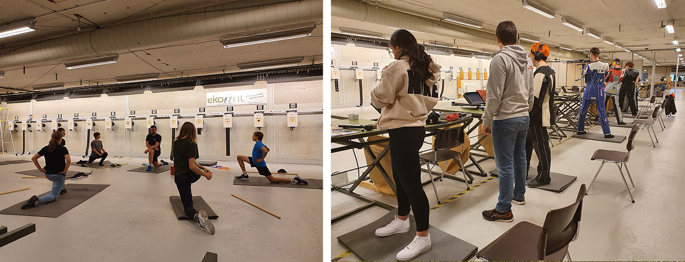 Skjuthallen används både för fysövningar och skytteträning