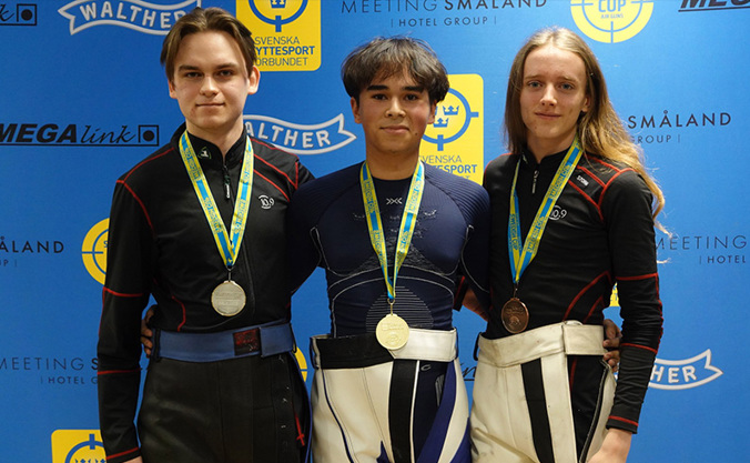 Victor tog hem guldet i dag igen och Erik Sahlin följde upp gårdagens silver med ett brons. Fr.v: Jack Rossiter, Australien/Norge (2:a), Victor Lindgren (1:a), Erik Sahlin (3:a)