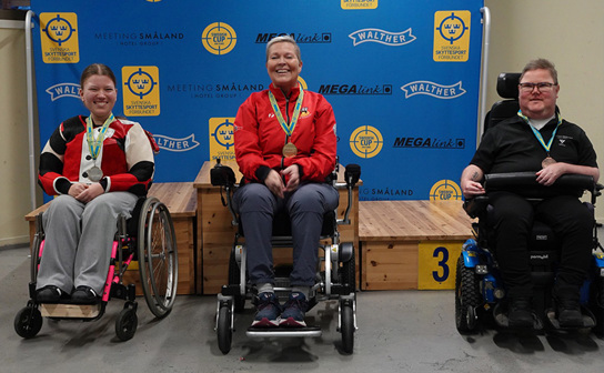 Helnorsk trippel i damernas gevär. Fr.v: Mari B Lövseth (2:a), Jeanette Hegg Duestad (1:a) och Milda Marina Haugen (3:a)