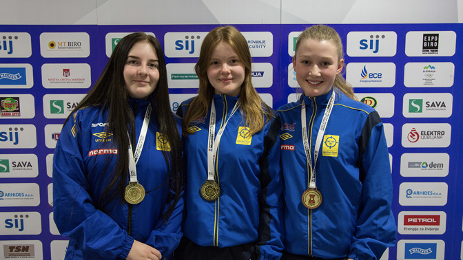 Lars Erik ledde det svenska guldlaget i 10m EM, 2017. Fr.v; Ida Abrahamsson, Josefine Thörnqvist och Rebecka Andersson.