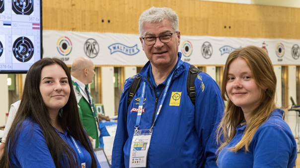 Lars Erik Bjuhr med Ida Abrahamsson och Josefine Thörnqvist under luft-EM i Maribor, Slovenien 2017.