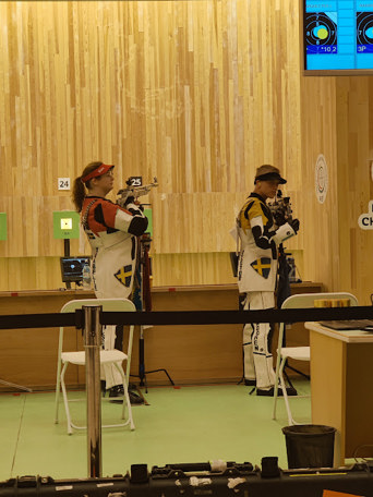 Inomhus i lufthallen avgjordes mixed-tävlingen med såväl luftgevär som luftpistol, med två respektive ett svenskt par. Tyvärr var det lite kärvt ur blågul synpunkt.