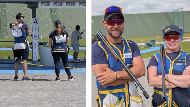 I skeetduetten som är ESC:s motsvarighet till mixed teams sköt Stefan Nilsson Schön och Victoria Larssons på en jämn och stabil nivå genom hela grundomgången och prickade 143 utav sina 150 duvor. Det kvalificerade dem till bronsmatch mot Azerbaijan. I bronsmatchen, som live-streamades på YouTube, fick svenskarna tuffast tänkbara start där motståndarparet Aghazada/Meftakhetdinova startade med felfritt skytte medan svenskarna fick med sig några bommar i varje serie. Här delas två poäng ut till laget som med flest träffar och vid oavgjort får lagen varsin poäng. Vickan och Stefan fick se sig besegrade med siffrorna 2-6 och bronsmedaljerna tillföll de Azerbaijanska skyttarna. Snöpligt med svenska ögon sett men ändå rättvist då motståndarna stod för det vassare skyttet denna afton.