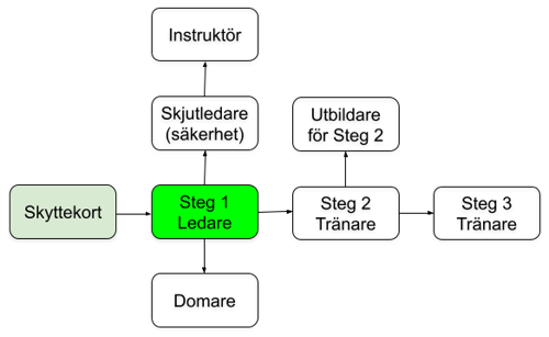 *Steg 1 öppnas automatiskt efter att en Skyttekortsutbildning har genomförts i Utbildningsportalen. Om du har tagit Skyttekort sedan tidigare men inte kommer åt Steg 1-utbildningen kontaktar du kansliet så hjälper vi dig.