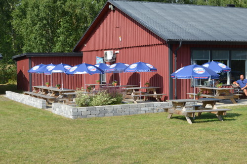 Bildtext: Klubbstugans uteservering väntar på att ta emot gästerna vid SM-veckan på Wendesbanan utanför Kristianstad.