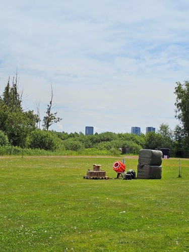 KFK ligger väldigt stadsnära men med en motorväg alldeles bakom en vall och flygplatsen i närheten.
